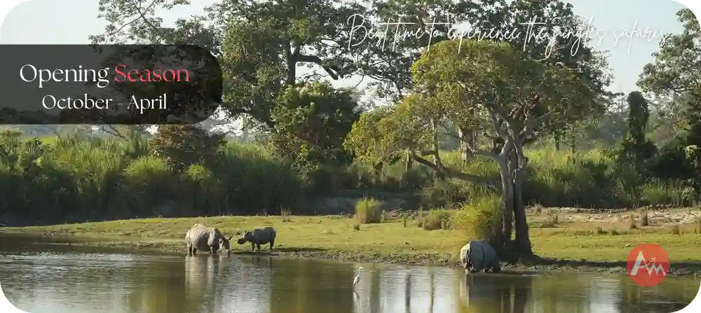 Beyond the Kaziranga National Park itinerary, include Manas National Park Safari booking and Pobitora Jeep Safari for a complete Assam Tour Package with a full wildlife triangle. Both offer less crowded but equally thrilling safari options, making them lesser-known hidden gems of Assam.Photographer’s Paradise in Every Season for Wildlife Enthusiasts